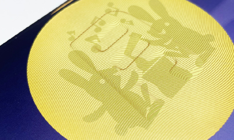 別工程のニスによって、印刷物に「細やかなマット感」を付与します。